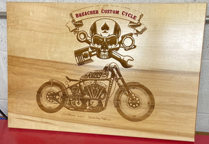 Buras Woodworking will custom make your business sign out of stone, wood or acrylic. Laser engraved with your logo and anything else you would like with it. Please use request form below to contact us for a qoute.
